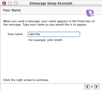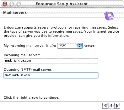 The following setup instructions (and screen shots) are basically for setting up Microsoft Entourage 2001 on an OSX setup but can be used for the System 9.x setup as well.