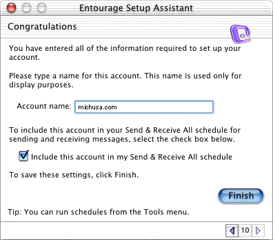 Step 7) . Enter michusa.com in the Account name: field then click on the Finish button to complete the setup.