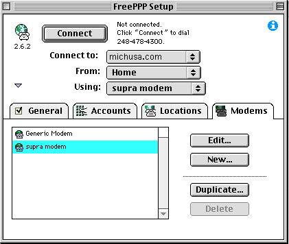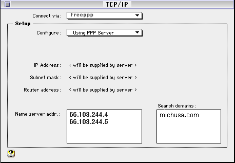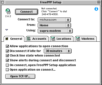 FreePPP 2.6 for Mac dial-up using MICHUSA.COM