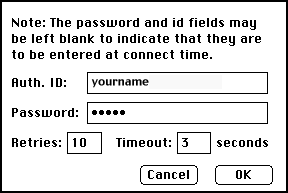 Authorization Account. . . . userid (for using the dial-in modems)