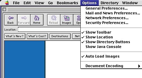 Step 1) Double-click on the Netscape application icon to open the program. Choose the Mail and News Preferences... from the Options menu.