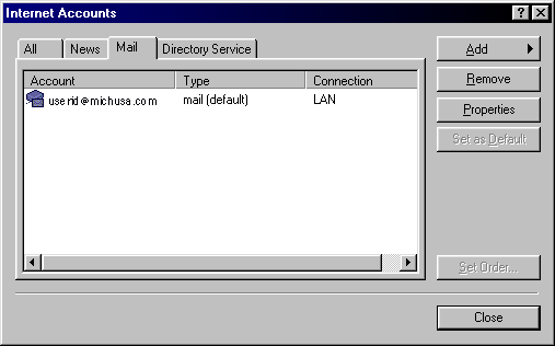 Step 1) Open the program and select the Accounts option from the Tools menu. Click on the Add button to start a new account. (NOTE: you can edit existing accounts by selecting the account name and clicking the Properities button or by double-clicking on the account name.)