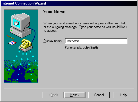Step 2) The Internet Connection Wizard will assist you to congifure you new account. Enter you name in the Display name: field then click the Next button to move to the next screen.