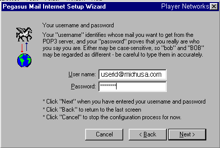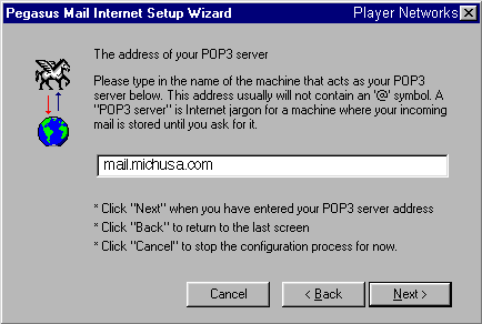 Type: mail.michusa.com for the POP3 server address. Click