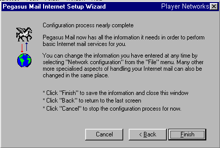 When you start Pegasus for the first time, the program will activate a setup wizard prompting you to respond to the following screens.