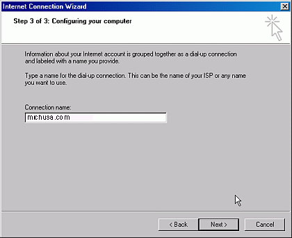 Step 6) Type in michusa.com as the Connection name: then click the Next button to continue.