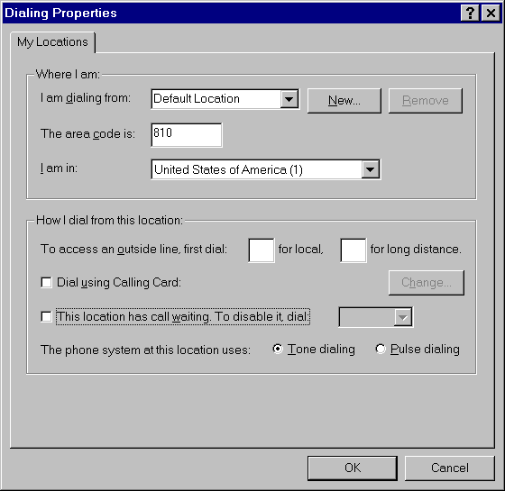 To connect to michusa using Windows 95 Dial-Up Networking, select Dial-Up
