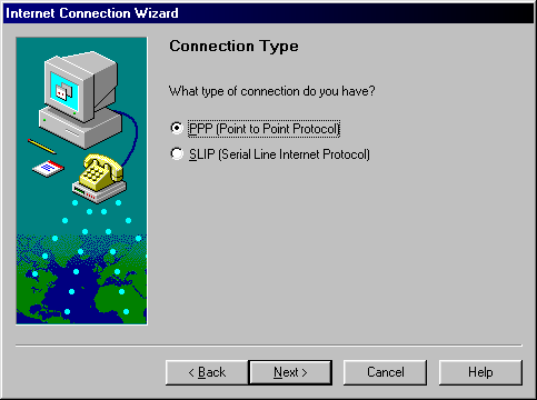 Step 7) Select PPP(Point to Point Protocol), then click the Next button to continue the setup.