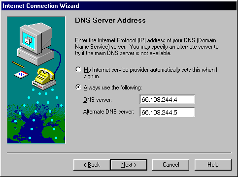Windows 98 Connection Wizard for use with michusa.com